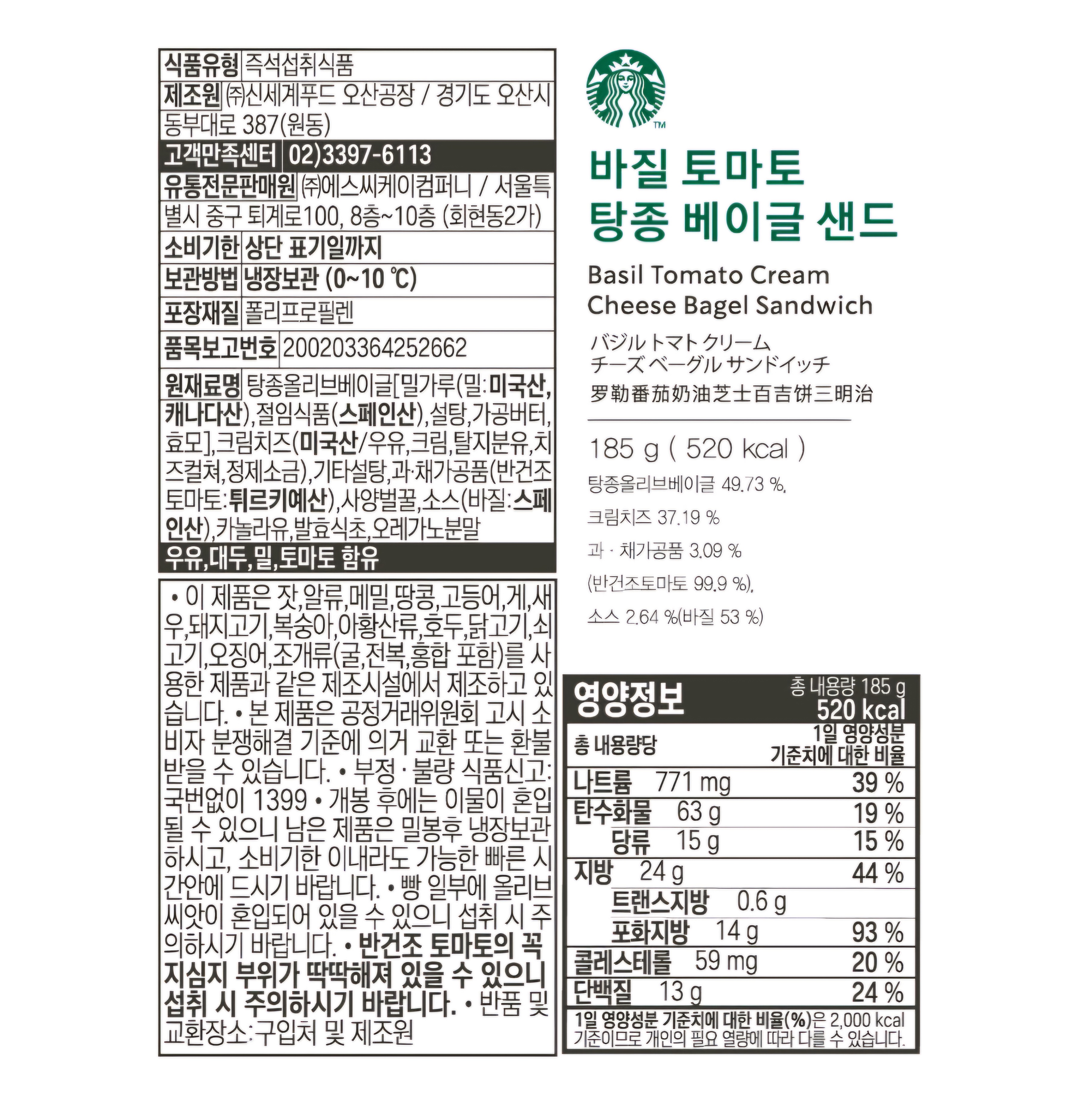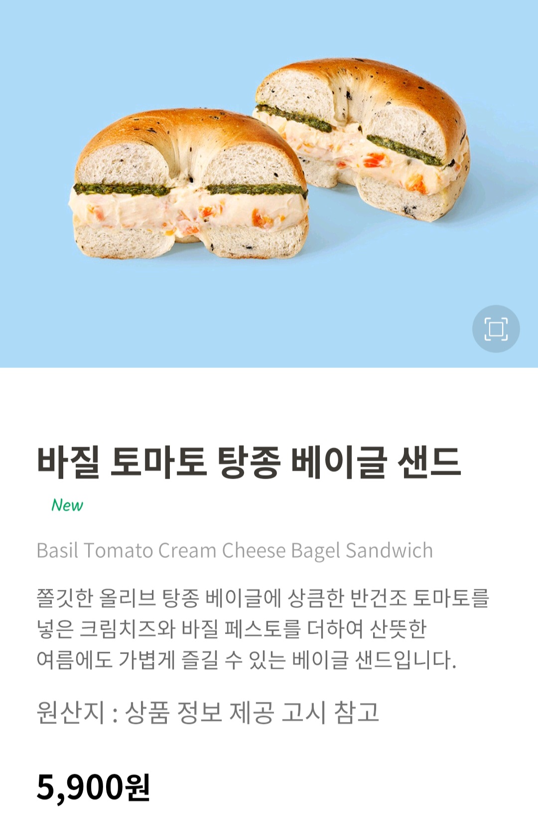 '바질 토마토 탕종 베이글 샌드'를 먹어보았습니다.